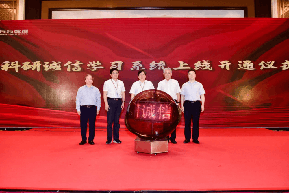 科研诚信是科技创新的基石,也是我国建设科技强国的重要保障,万方数据一直致力于以技术力量助力科研遏制学术不正之风。为积极响应国家关于加强科研诚信建设、弘扬科学家精神与加强作风、学风建设的政策要求与文件精神,本次大会万方数据重磅推出了“科研诚信学习系统”,为我国高校教育教学、科研管理、科研工作提供强有力的工具与抓手。中国科学技术信息研究所副所长刘琦岩,科技部科技监督与诚信建设司科研诚信建设处王中阳,北京万方数据股份有限公司董事长蒋勇青,南京大学信息管理学院教授叶继元,高校代表华中科技大学校长助理、图书馆馆长、校学术道德监督委员会副主任委员聂鸣共同点亮了标志着平台上线的彩球,预示着科研诚信学习平台正式开始为科研工作提供保障服务,助力我国科研诚信建设与学术不端治理工作。