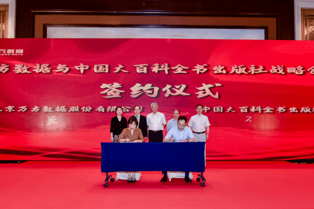 之后在各位领导的共同见证下,万方数据与中国大百科全书出版社签署了战略合作协议,未来双方将共同建设、运营融媒体学术百科平台,大力推动数字中国建设。