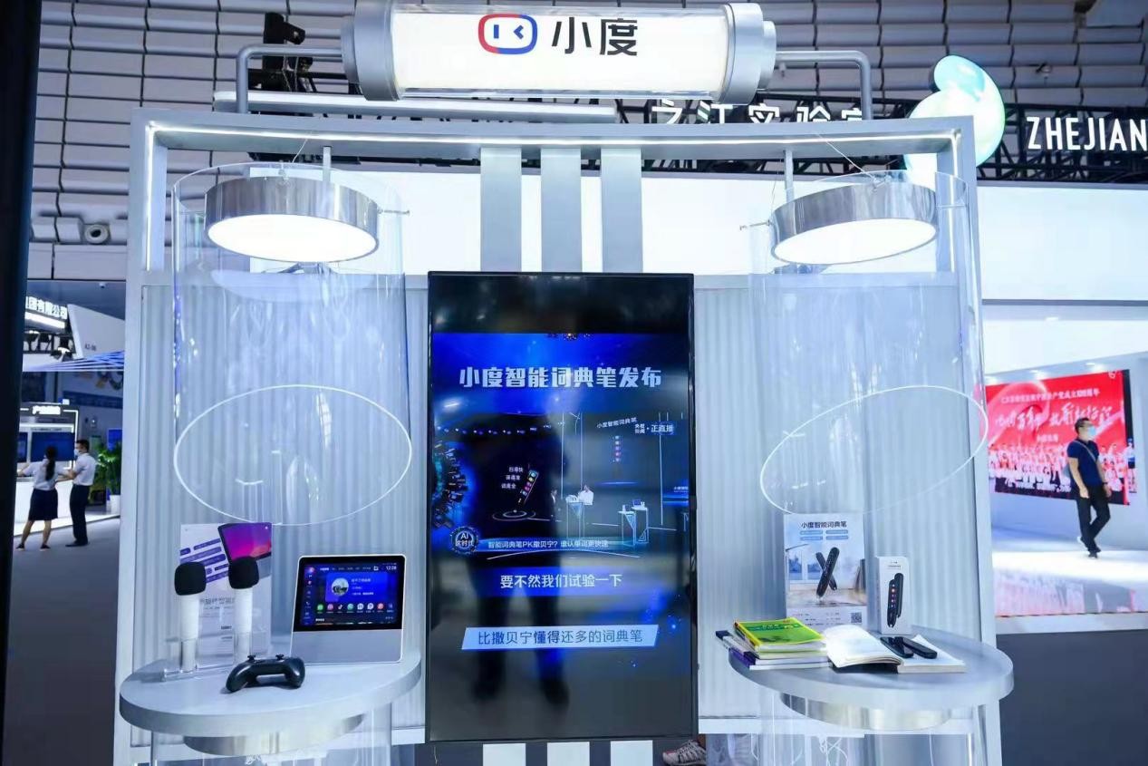 在展台现场,小度的两款智能教育类硬件——小度智能学习平板、小度智能词典笔也吸引了不少学生和家长的眼球。