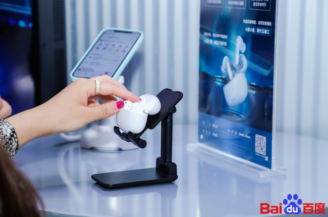 小度主动智能降噪耳机Pro,是展台上的另一款明星产品。该产品也是在百度世界2021上由小度与央视新闻联合发布,作为小度首款搭载主动降噪功能的真无线耳机,小度主动降噪智能耳机Pro内置12mm超大动圈,采用强钕磁铁材料,音质达到HiFi级音效。它还具备通话录音转写、智能助手等多重实用功能,用户只需打开小度APP,即可一键开启通话录音转写功能,日常上班通勤中的商务电话、会议纪要记录等,轻松帮助用户满足多种需求,堪称职场人士必备的“办公好助手”。