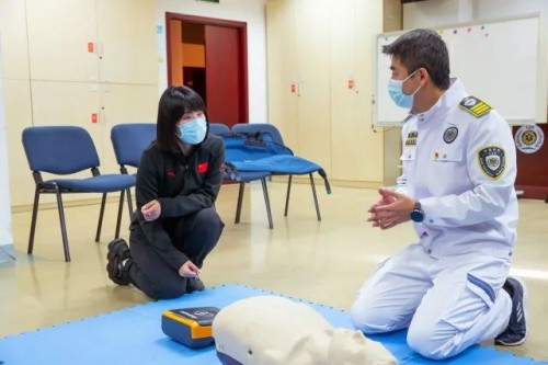 在急救中心,周洋还接受了一次医疗急救的培训,学习使用医疗急救中的“救命神器”——AED(自动体外除颤器)。据介绍,此次大赛的相关场馆均配备有AED,并由专业急救人员对场馆工作人员进行培训,将在比赛期间承担持续守护的使命。