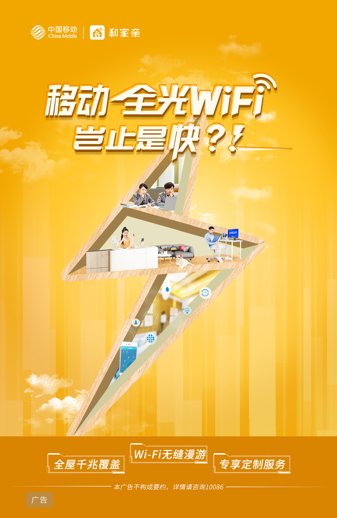 同时,安装移动全光WiFi,中国移动提供智家工程师专属服务,上门设计,快速无忧,安装放心,服务贴心。全光WiFi提供的“智能假期”让每一个期待数字化生活的人都能够拥有完美体验。