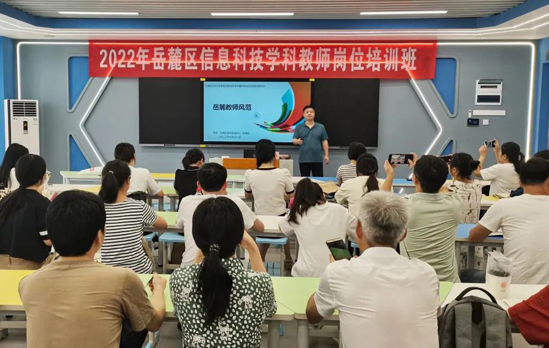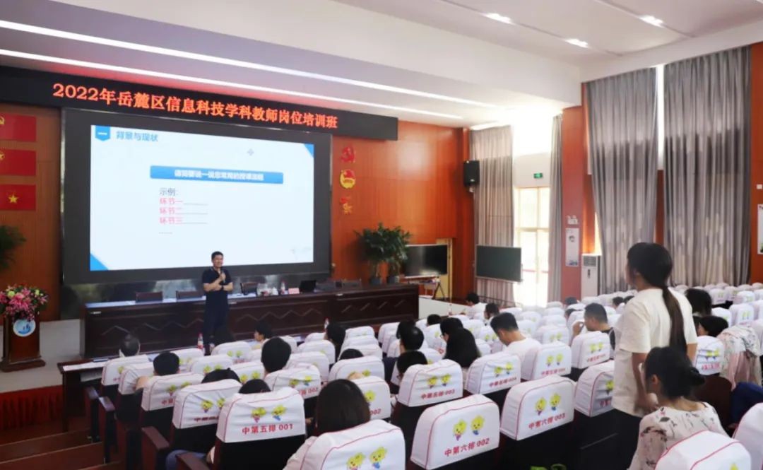为贯彻落实《教育部关于实施全国中小学教师信息技术应用能力提升工程2.0的意见》、《岳麓区人工智能创新教育发展行动计划》的文件精神,推动教师主动适应信息化、人工智能等技术变革,有的放矢地提高教师信息素养,提升教师运用信息技术助力教育教学变革的能力。7月11-14日,由岳麓区教师发展中心主办的“2022年岳麓区信息科技学科教师岗位培训”在长沙市实验小学梅溪湖学校举行,培训分为理论学习和项目式体验课程两大部分,共有来自全区的60余名信息科技教师参与了本次培训。