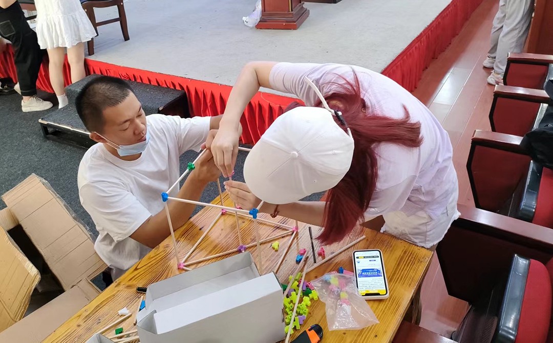每天培训结束之后,参训教师们还会参加“随堂竞赛测试”,利用当天学到的3D One和 3D One AI软件操作方法,小组之间相互比拼搭建天梯的高度、月球车运输物资的速度,充分展示自己的学习成果,感受以赛促学、以赛促教的教学理念和方式。