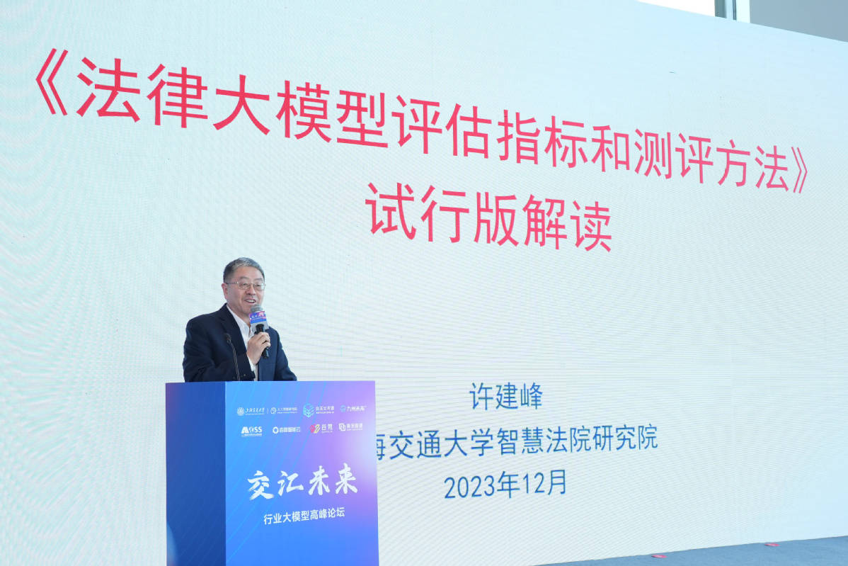 上海交通大学特聘教授许建峰作《法律大模型评估指标和测评方法》主旨报告,他指出法律人工智能是人工智能技术发展的重要方向,大语言模型促进了自然语言理解技术的新突破,也为法律人工智能发展提供了重大机遇;通过一套较为全面、系统、实用的评估指标和测评方法,指引和推动法律大模型的研发、测评工作,并向广大业界同仁广泛征求意见,在实践中不断迭代完善,促进法律人工智能发展。