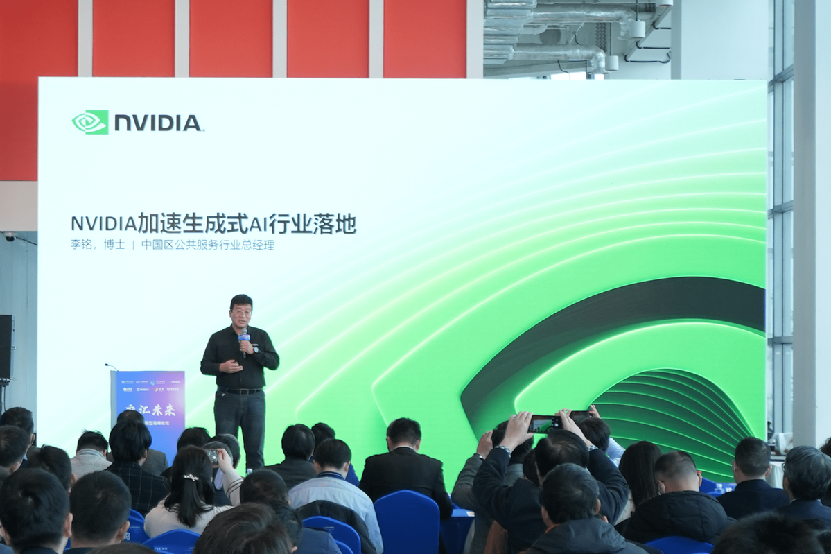 NVIDIA中国区公共事业行业总经理李铭作《NVIDIA加速生成式AI行业落地》主旨报告,他提到世界各地的公司正在从通用型计算向加速计算和生成型AI过渡,大语言模型(LLM)正在重塑人工智能。并介绍了NVIDIA在人工智能领域的领先探索,包括面向电信公司的计算机视觉/IVA 应用、工业制造业AI应用,以及汽车领域的企业人工智能和数据科学应用等。