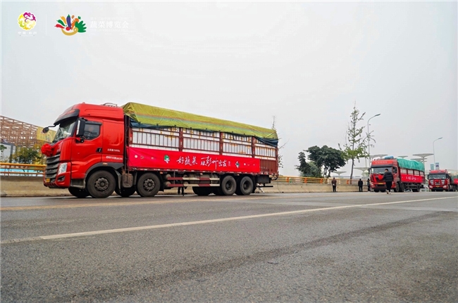 在第十三届中国·四川(彭州)蔬菜博览会(以下简称“菜博会”)开幕式发车仪式上,一排排满载着新鲜蔬菜的货车在响亮的鸣笛声中启程,满载着希望与活力驶向全国各地,生动展现了彭州蔬菜产业的繁荣与生机。