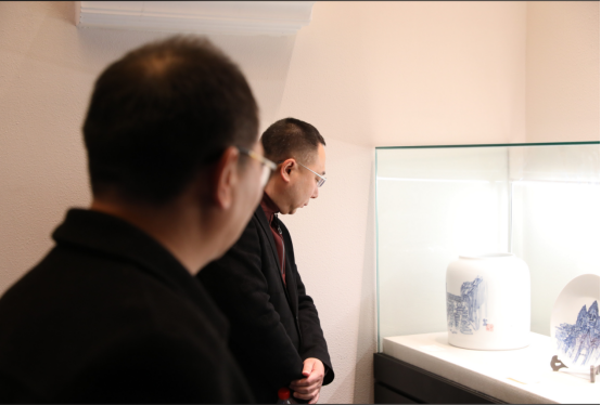 活动最后,与会嘉宾们还观摩了“吴哥秘境·青花瓷”金弘雨个人作品展,参观了长三角G60·元宇宙数字体验馆。“吴哥秘境·青花瓷”作品展是长三角智慧城区数字文创服务中心金弘雨主任在前往柬埔寨体验吴哥文化之后,将中国传统水墨青花艺术与吴哥文化相融合,创作出的一系列艺术作品。