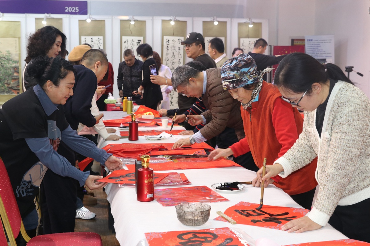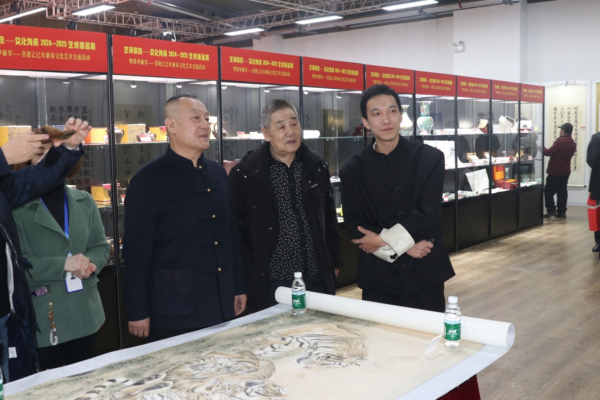 据悉,本次展览共有两个展览版块、一个互动版块组成:其中之一名为“艺海弥珍•文化传承艺术臻品展”。该板块由来自全国多地近百位艺术收藏家报名提供的200余件作品为主,品类包括瓷器、玉器、金属器、木器以及书画等,专业齐全、丰富多彩,进一步体现了和谐社会,盛世收藏在民间的热度和活跃度。仪式期间,更是有数位鉴定专家莅临现场,针对参展作品进行了现场品鉴,吸引了大批艺术爱好者、收藏界人士到场参观和交流,不但强化了展览的互动,提升了展览的意义,还进一步带动了参展作藏品价值转化的效果,成果显著。第二板块名为“墨华新岁•迎新书法作品展”,将由来自全国多地的28位书法名家的作品组成,旨在通过专题创作,为本次展览迎接新春佳节的内容续添更多精彩。同时,还组织举办了“墨华新岁 迎新送福——书法名家写福送福交流会”的互动活动,由参展艺术家们现场书写福字、春联等作品,并赠送到场的嘉宾和观众,极大程度的活跃了现场气氛,传递了乙巳新春的美好祝福。