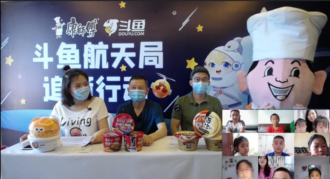 而通过航天专家的讲解,康师傅在小朋友们的心中,也更加“高大上”起来!原来自己经常见的“方便面”,竟然也蕴藏着高科技的航天基因!精彩不止如此互动问答环节,可爱的康宝宝终于登场了,孩子们通过直播平台踊跃发言,个个都积极抢答,康宝宝带去的礼物马上被“瓜分一空”。