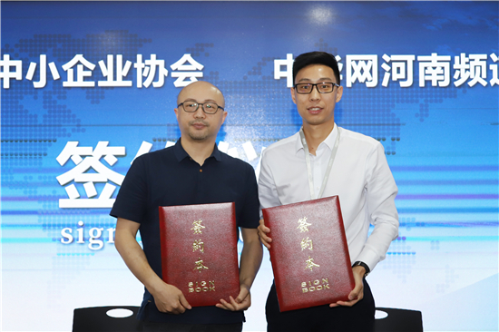 中华网河南频道总监吴猛与郑州市中小企业协会会长刘明江正式签署战略合作协议。