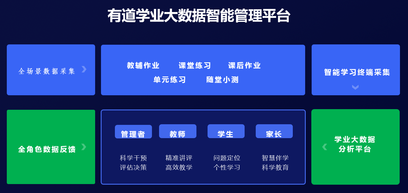 本次,网易有道发布的有道智能学习终端,旨在实现整个学校,甚至整个学区所在的学校与所有学生的学业大数据的智能化管理。具体来看,学校可以通过这个终端连接教师、学生和家长端,实现精准高效教学、个性化的学情分析及科学的伴学指导。在产品功能方面,有道智能学习终端可以实现学生自主进行作业图像采集、纸质作业智能批改、识别并整理错题、AI辅助自主学习(包括自助答疑、AI作文批改等),此外还可以基于学生的基础学情数据进行个性化的练习推荐,分析学生知识点掌握情况、班级分数分布与学科能力,乃至于整个年级的能力分布与学科能力统计。