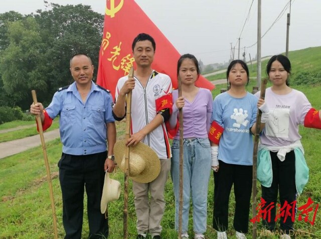 步伐轻盈飘逸,尽显青春气质。7月26日6时,天空刚露鱼肚白,湘阴县岭北镇铁窑社区防洪大堤下,3个婷婷玉立的少女跃入记者眼中,她们佩戴袖章,手持竹剑,踏着露珠出发了。