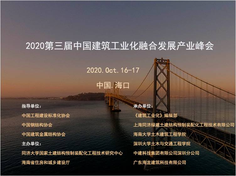 以“新空间· 新使命”为主题的“2020第三届中国建筑工业化融合发展产业峰会” 2020年10月16至17日在海南海口成功举办。大会从工业化建筑产业发展的视角,衔接技术、产业与经济,勾勒建筑业转型升级的融合发展之道,着眼国内外经济社会发展的空间结构变革,梳理机遇与挑战,探索创新与融合。峰会围绕“装配式建筑技术融合创新”、“建筑工业化全产业链协同发展”、“信息化与智能化技术”、“海南省建筑工业化技术与产业合作”等议题展开精彩的交流分享。吸引了600余名专家、代表参加。