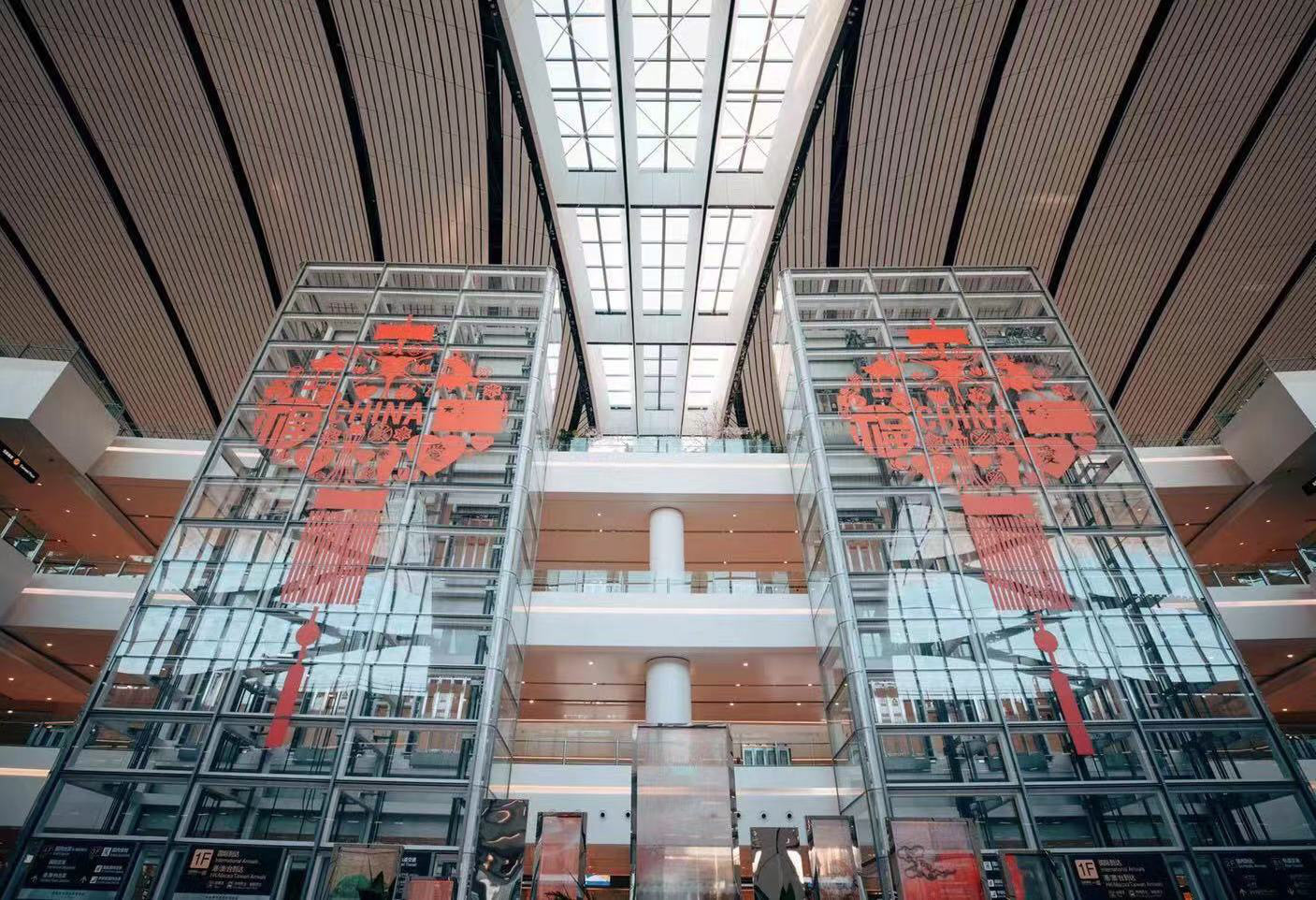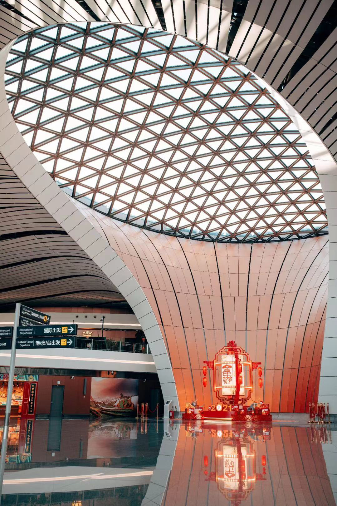 您准备好跨入新的一年了吗?大兴国际机场已经布置妥当,年味浓浓。