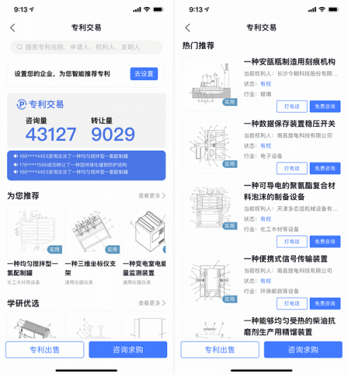 新版本还新增商标/专利一键求购与出售功能,可以选购海量商标/专利啦,并且APP会智能推荐行业相关资源,查标比价省钱省心,快速技术变现,资源互惠。