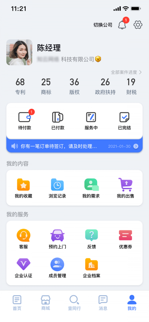 新增“服务中心”功能,集合了客服、预约上门、反馈、优惠券、企业认证、成员管理、企业档案等多个重要服务入口,在这里用户可以一站式完成所有服务相关的操作。