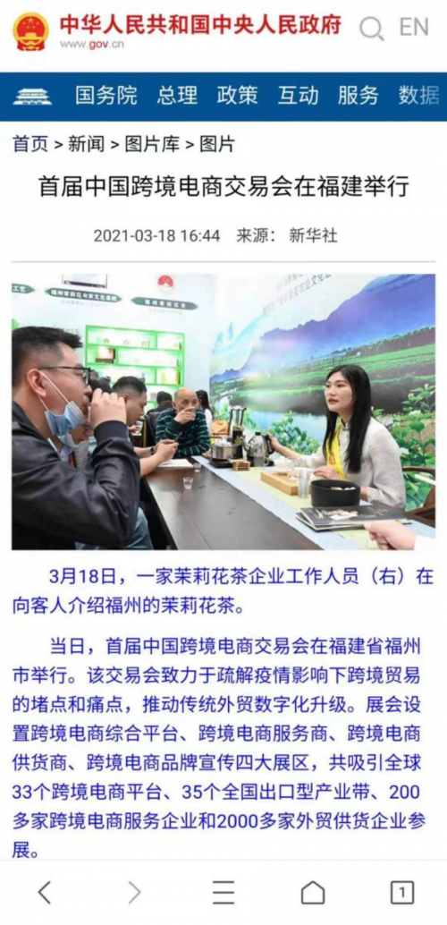 福州茉莉花和茶文化系统是全球重要农业文化遗产,福州茉莉花茶窨制工艺是国家级非物质文化遗产保护项目,2020年9月福州茉莉花茶更荣膺首批《中欧地理标志协定》保护的中国100个地理标志产品行列,闽榕作为国家地理标志核准使用单位,将通过此次跨境电商大会及国家一带一路倡议香飘溢满世界。