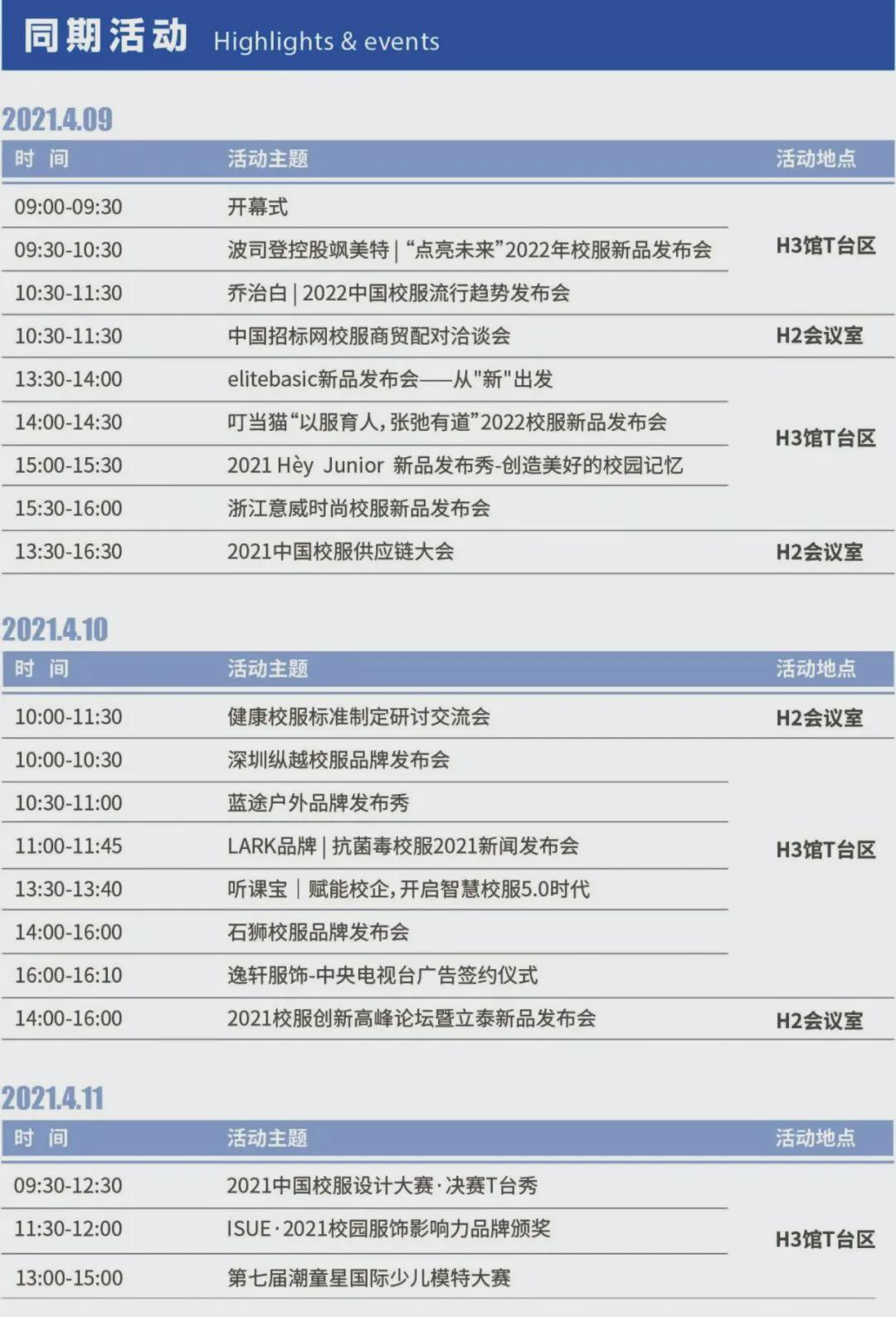 飒美特、衣俪特、叮当猫、森马、意威、纵越、蓝途……各大品牌新品发布会同期跟进,各大校服企业齐聚一堂,掌握最新校服动向,这场盛宴不容错过!