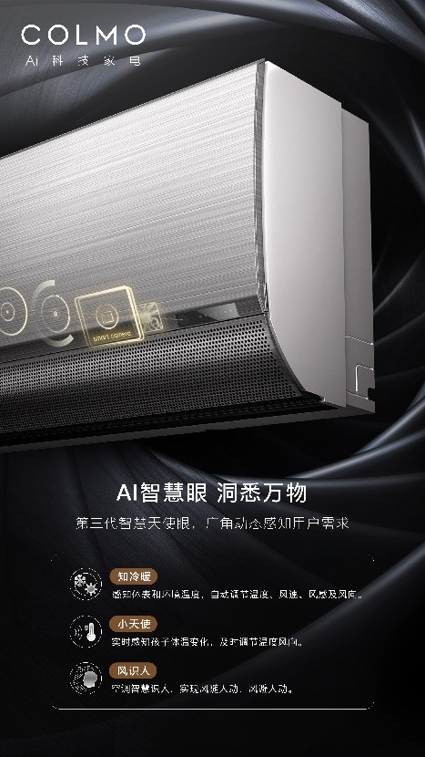 COLMO空调运用AI自学习科技,知人所感,因人而异,持续自我迭代以贴合人类对极致空气的追求;运用全屋五维微气候科技,联动空气不同要素以寻求适宜平衡点,给室内空间带来最舒适的空气体验。