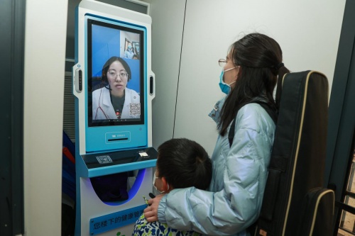 居民在健康壹家服务站进行视频问诊