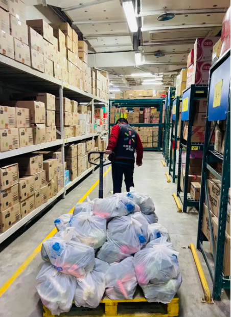 沃尔玛西安碑林区李家村门店电商主管马云云(右一)带领同事全力备货中