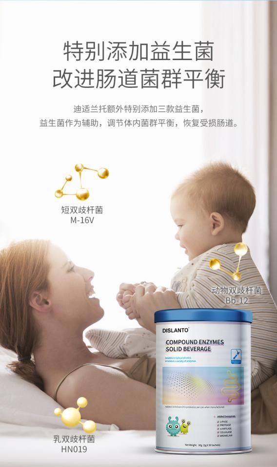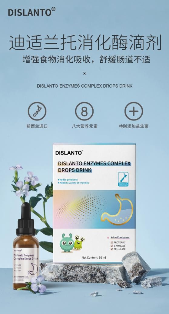 迪适兰托精心推出的消化酶粉和消化酶滴剂两款产品,始终将人们的需求放在首位,尽力让每一位消费者都能摆脱消化不良的困扰,而作为专注于胃肠道和过敏免疫调节的品牌,迪适兰托希望能够有效地改善由于生活方式和药物治疗所导致的肠道微型生态环境失衡,为保障人们的身体健康做出努力!