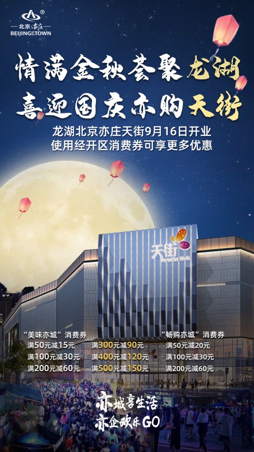 龙湖北京亦城天街开业,恰逢经开区“亦城享生活·亦企欢乐GO” 消费券发放活动中。9月8日,“尚亦城”APP发放第二波“畅购亦城”消费券,同时“美味亦城”消费券也推出新面额消费券。消费者可通过“尚亦城”APP亦城优品商城或京东商城购物时核销,线下则在亦城商圈参与活动的商超,包括本次即将开业的龙湖北京亦城天街,以及相关餐饮企业进行核销。