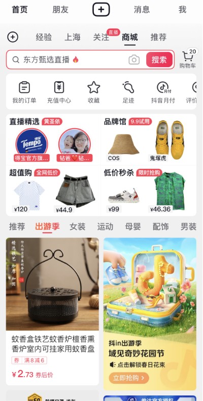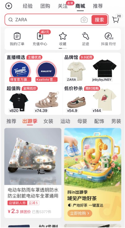 一方面,超20位头部达人化身“出游好物推荐官”,立体化提高传播声量;同时,活动专属话题#抖in域见好货及活动主会场进一步聚合参与活动的商家和好物,以一站式营销阵地,激活出游好物消费潜力。另一方面,抖音站内还配置明星开屏、商城活动中心等黄金资源位,为活动强势引流,打造全平台出游囤货心智。