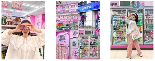 在活动期间,江浙沪、广州、安徽、重庆和成都的一整个粉住你罗森主题便利店已整装待发,店内场景也已经布置成了小红薯线下打卡的绝佳场景,整间便利店化身为粉色天堂。
