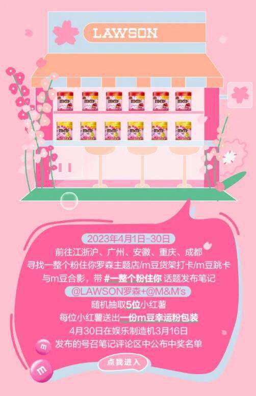 红薯们既可以前往附近的罗森主题店打卡,也可以和M豆货架或M豆跳卡拍照,只要带上#一整个粉住你 话题,晒出你在罗森主题店/M豆货架/M豆跳卡前和M豆的合影,并@LAWSON罗森+@M&M's,就有机会得到一份幸运礼物!