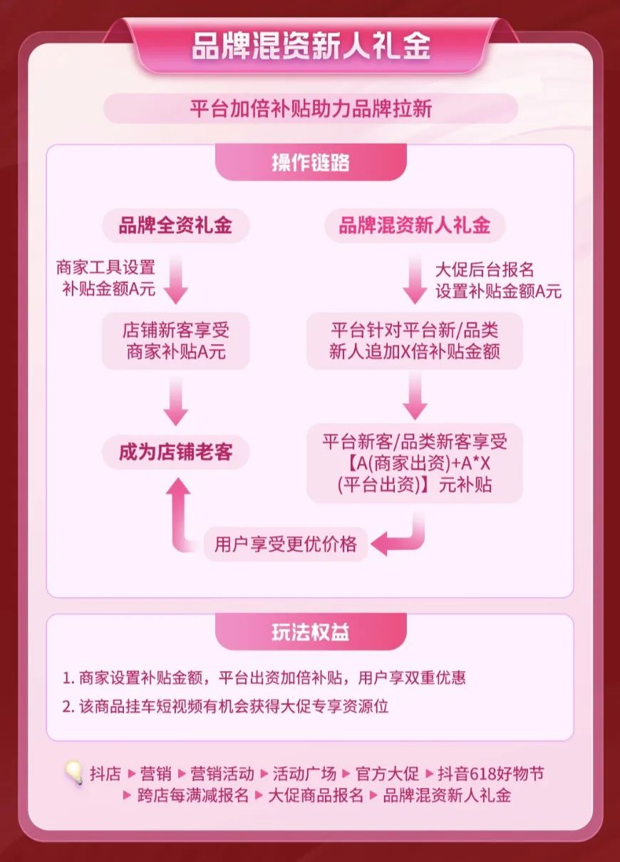 近两年间,许多品牌将重心回归到用户本身,通过发力私域、沉淀会员,以高质量用户为生意增长提供更持久的动力。围绕用户增长,抖音电商推出「品牌混资新人礼金」玩法,通过平台对新客的加倍补贴,借助优价好物为店铺吸引更多新用户,实现更快拉新拓客。