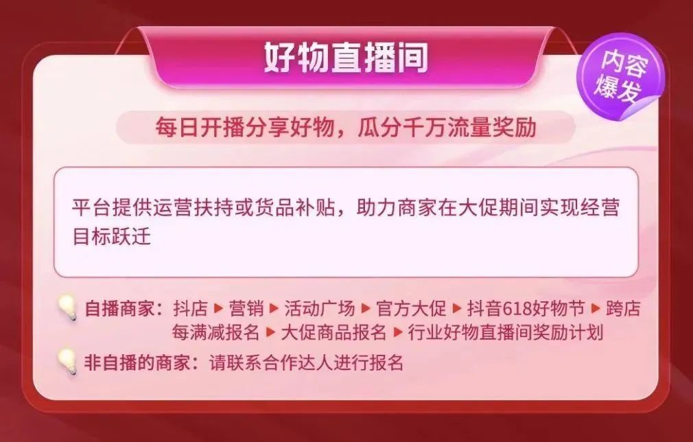 「好物直播间」聚焦直播场域,商家每日开播即可瓜分千万流量奖励,实现生意更快跃迁;