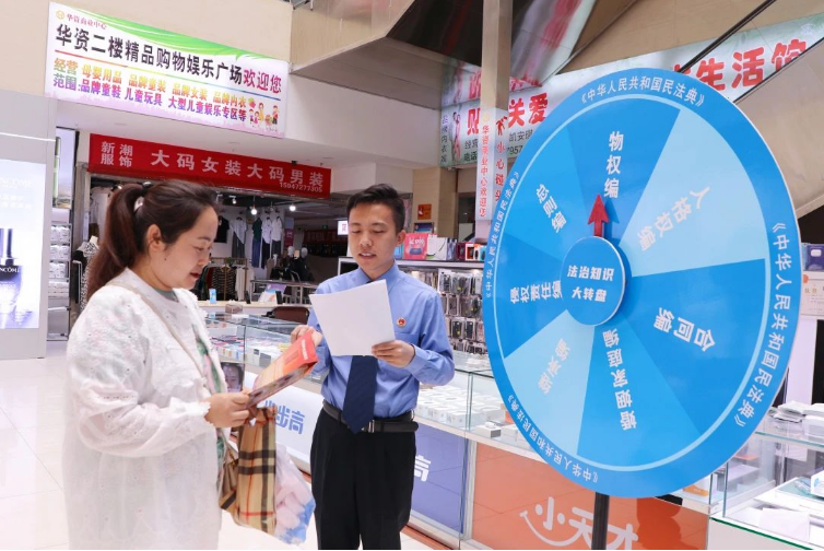 民法典是第一部以“法典”命名的法律,凝聚着14亿人民的共同意志和梦想,被誉为“社会生活的百科全书”。康巴什区人民检察院借助民法典宣传月组织开展“民法典”宣传活动,活动采取"转盘+答题+奖励"的新颖形式,让人民群众喜于参与、乐于接受,真正做到了让《民法典》知识入脑、入心。