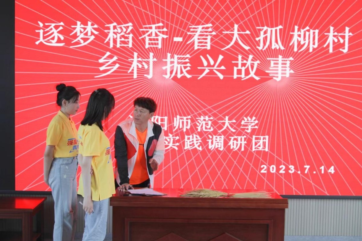 为引导和帮助广大青年学生上好与社会相结合的“大思政课”,在社会课堂中“经风雨、见世面、开阔眼界”,在躬身实践中助力乡村振兴,2023年7月13日至15日,沈阳师范大学学前与初等教育学院逐梦稻香社会实践调研队在高薇老师的指导下,深入沈阳市大孤柳村进行乡村振兴主题调研,从农业产业、旅游休闲、风土文化三个层面深入挖掘大孤柳村的振兴模式,在农旅文融合视角下弘扬家国情怀,助力乡村振兴。