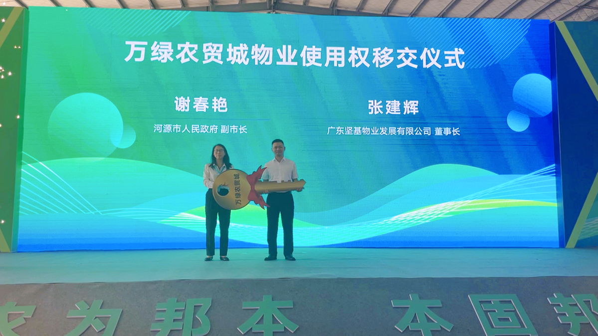 现场举行了万绿农贸城物业使用权移交仪式。据介绍,万绿农贸城由河源国资系统投资,总投资8.5亿,位于河源市源城区,距粤赣高速公路出入口700米处,总规划面积40万平方米,设立农产品批发、仓储、农产品加工、河源农产品城市展示(示范街)版块,其中农产品批发板块包括三鸟交易区、果蔬交易区、海鲜水产交易区、肉制品交易区、农副食品交易区、进口食品交易区以及精选农产品会员超市等,将致力打造为粤东北地区规模最大、配套最齐全的国家4A级农产品批发中心。