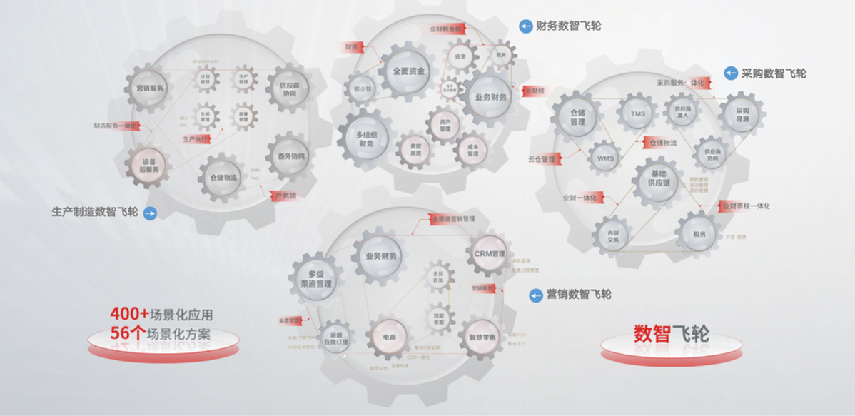 每个业务场景可以单独闭环形成小飞轮,每个飞轮包含 “角色-数据-流程-绩效”等管理要素,实现一个完整的管理与业务闭环,一个最佳的业务场景实践,更贴合成长型企业的数智化应用需求,小飞轮又可以互相整合形成大飞轮,直至在数智化转型之旅上全速前进。