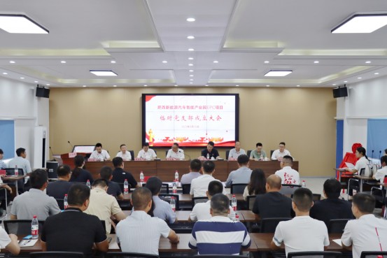 会上,肥西产城控股集团宣读了《关于成立肥西新能源项目临时党支部的批复》,参建单位共同为项目临时党支部揭牌