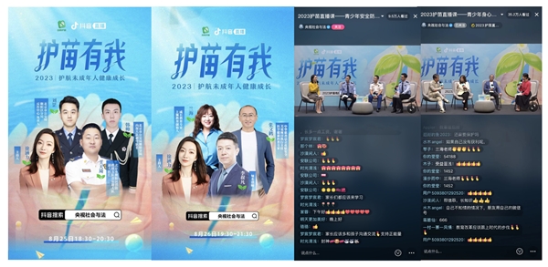 随着现代社会的不断发展,青少年群体面临的社会环境也相对复杂,需要有更高的安全意识去保护自己。“互联护苗2023”系列直播公开于8月25日至8月26日分两场进行,邀请了北京市朝阳分局反诈中心、北京市朝阳分局内保大队、朝阳消防以及@李叔凡律师、@仙鹤大叔张文鹤、@超级育儿师兰海 等抖音创作者。分别围绕青少年防欺凌反诈防骗、健康身心等主题进行科普直播。旨在提升青少年的“自救互救”能力,帮助青少年健康成长。该系列直播吸引了近500万人次在线观看。