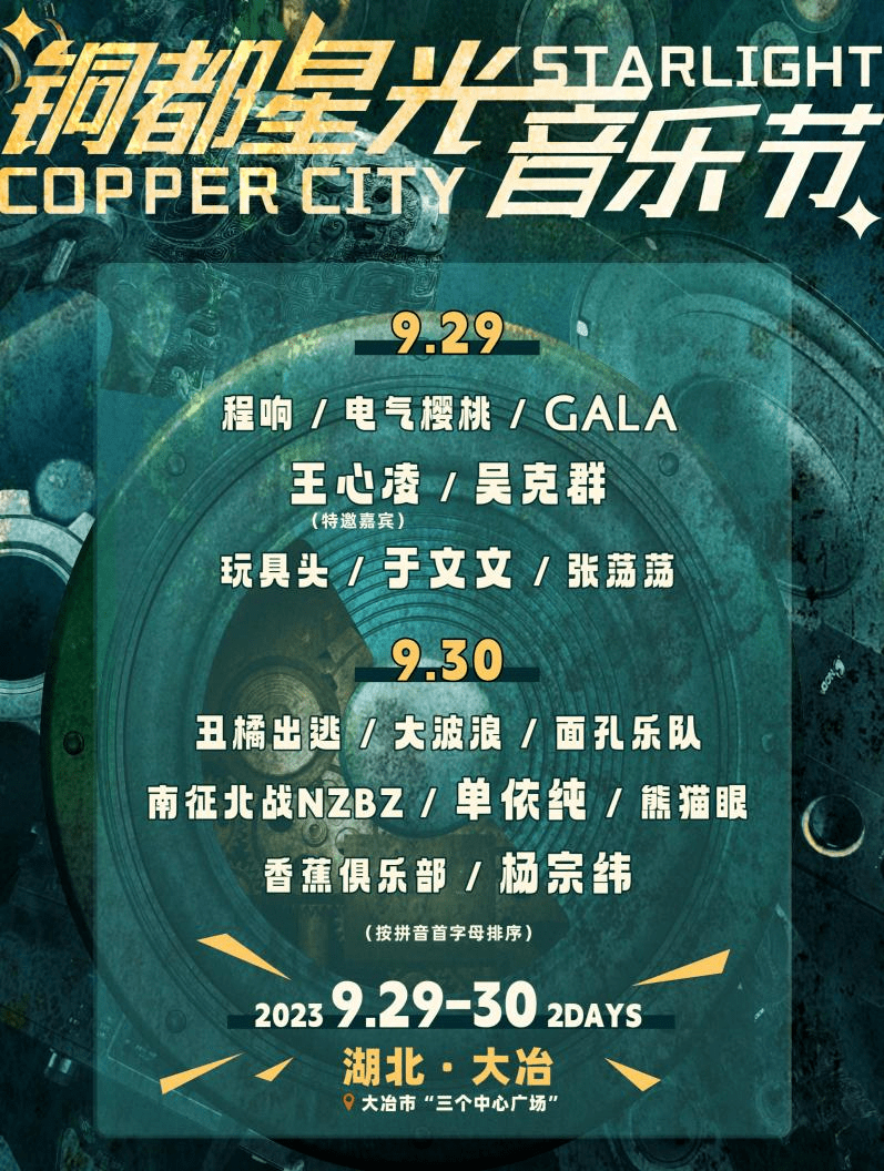 2023年9月29日至30日,铜都星光音乐节将在大冶“三个中心”广场热情开唱!这是湖北大冶有史以来举办的第一场音乐节活动,16组重磅演出嘉宾即将登场表演,给大冶的这个中秋国庆长假增添精彩,点燃假日激情!9月1日,铜都星光音乐节主办方宣布,9月2日12:18正式开票。