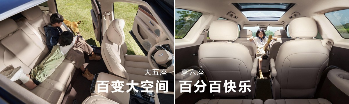 问界新M7充分考虑家庭出行需求,大五座拥有同级领先的车内有效空间,长度达到3338mm,每个座位都很宽敞。后备箱纵深1100mm,标准容积可达686L,轻松容纳12个20英寸登机箱[ 测量方法符合GB/T19514-2004/ISO3832]。在二排座椅放倒与后备箱连通后,最大纵深拓展至2051mm,可形成1619L[ 后备箱容积测量方法符合 GB/T19514-2004/ISO3832,仅适用于五座版]的装载空间,轻松容纳30个20英寸行李箱,并可切换2米大床等多种模式,轻松实现双人平躺,配合后备箱52L储物暗格,极致的空间效率满足了家庭用车的装载需求,无论是一个人的远方、两个人的浪漫、还是一家人的幸福,都能轻松装下。