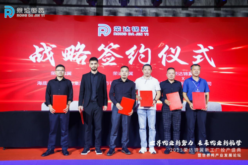 活动现场,荣达锦翼总经理李广周介绍了企业在产业、产能、设备等诸多优势和产品规划,他表示企业未来将全力向着“2023年完成产业链布局,2024年综合产业营收破60亿,2026年IPO上市”的经营目标奋进!此次论坛现场还举办了荣达锦翼与多位国内国外采购商的战略签约仪式。