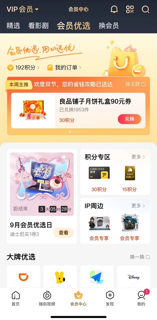 为提升广大VIP会员的福利体验及会员积分使用的广泛性和便捷性,伴随首期会员优选日,会员优选频道也正式上线。频道从用户体验、平台服务、品牌服务等方面进行了重点打磨。用户体验层面,每周推荐板块将结合热门话题、节假日等,为会员用户优选覆盖出行、美食、服务、日用、美妆等多品类的优惠福利,同时设置“积分专区”“IP周边”快捷入口,让VIP会员快速找到自己所需。平台服务升级上,将通过积分秒杀、积分抽奖等活动,让VIP会员的积分更值。目前,爱奇艺已与京东、高德打车、美团外卖、QQ音乐、三只松鼠、周黑鸭、去哪儿、樊登讲书、哈啰出行、网易严选、泡泡玛特等众多知名品牌展开合作,上新会员积分可兑福利,已累计提供福利商品340+。每月22日-28日,请各位VIP会员继续关注会员优选日,我们也将为大家解锁更多会员积分可兑的优选好物!