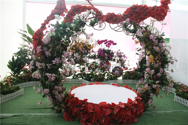 以蝴蝶兰和红掌为主花材的主题馆景观