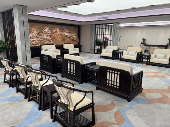 为展现浙江底蕴、大国气魄,中国大运河紫檀博物馆馆长,旭东红木董事长李晓东先生,还携百名资深匠人,以匠心工艺为本次亚运会“大莲花”量身定制了全部贵宾厅整装及软装家具。
