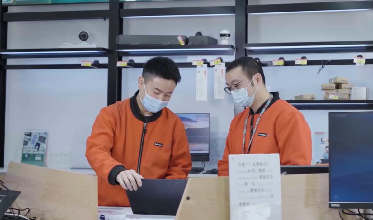 联想工作人员为客户调试电脑设备