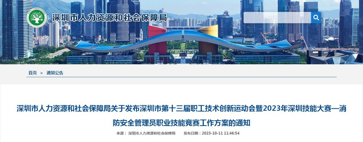 1、深圳市第十三届职工技术创新运动会暨2023年深圳技能大赛—消防安全管理员职业技能竞赛实施方案