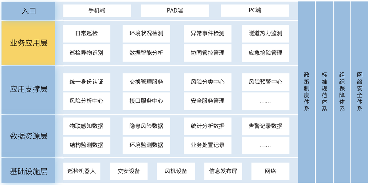 数据智能分析:应用大数据分析算法,根据风险因数预测隧道内可能危险事件,比如依据温度预测火灾,依据雾气、车辆拥堵情况预测事故发生概率。