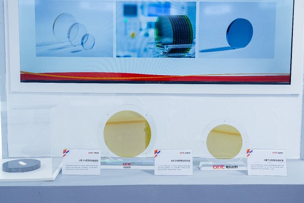 在芯片材料方面,中国电科展示了包括6~8英寸硅外延,6英寸N型碳化硅晶锭、衬底、外延,8英寸N型碳化硅衬底在内的6型产品。其中,硅外延片主要用于生产各种集成电路芯片和半导体分立器件,是半导体产业的基础性材料。而碳化硅具有高击穿场强、高热导率、高电子饱和速率、高抗辐射能力等优越性能,在新能源汽车、新一代移动通信、智能电网等领域有广泛的应用。