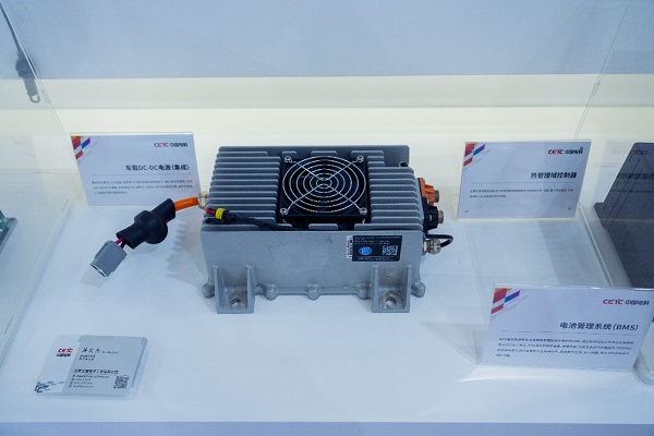 动力系统上,中国电科展示了电池管理系统(BMS)、车载电源DC/DC、热管理域控制器,产品运用第三代碳化硅驱动控制技术,输入电压范围宽,支持200~900VDC全覆盖;效率高达97%;体积小,长寿命,电气性能稳定可靠,高防护等级,广泛配套于整车电控系统中。